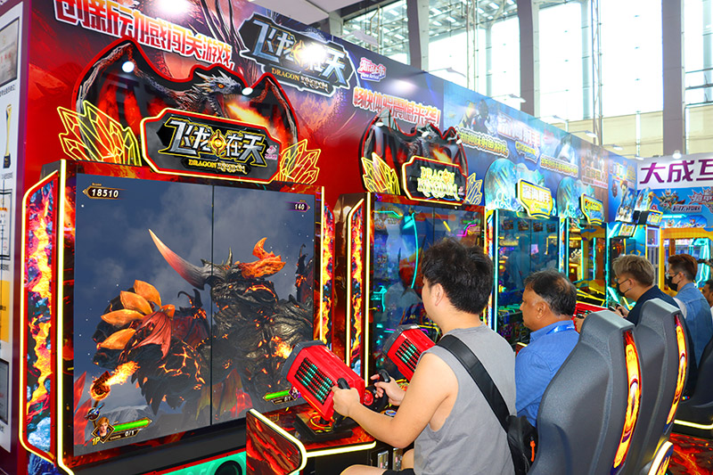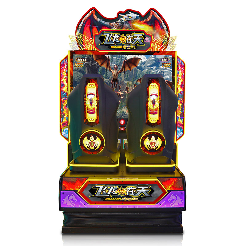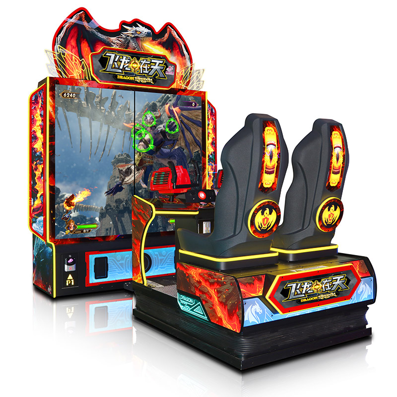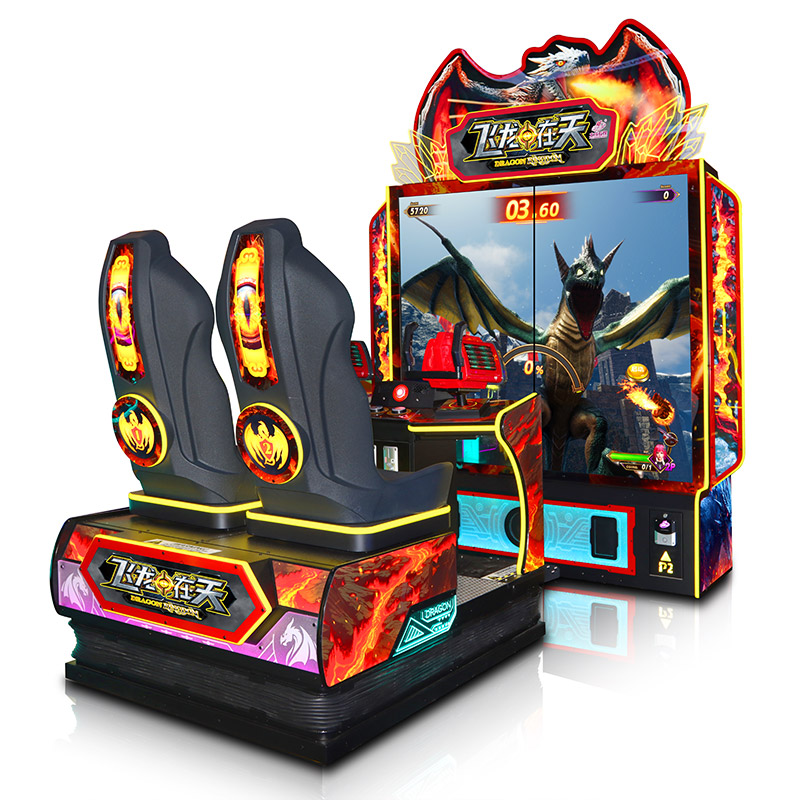全新的一款高端模拟魔幻驭龙射击主题游艺机,整机采用高端材质精工制造,65寸双联巨屏,视效,音浪,触感,气流,全方位4D氛围系统,让玩家置身飞龙背脊穿梭在熔岩喷薄,冰川崩裂等壮丽奇观中。