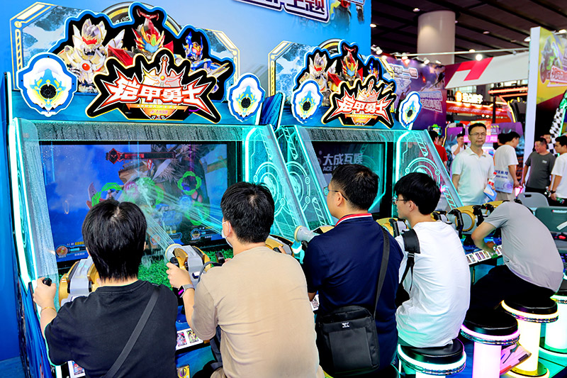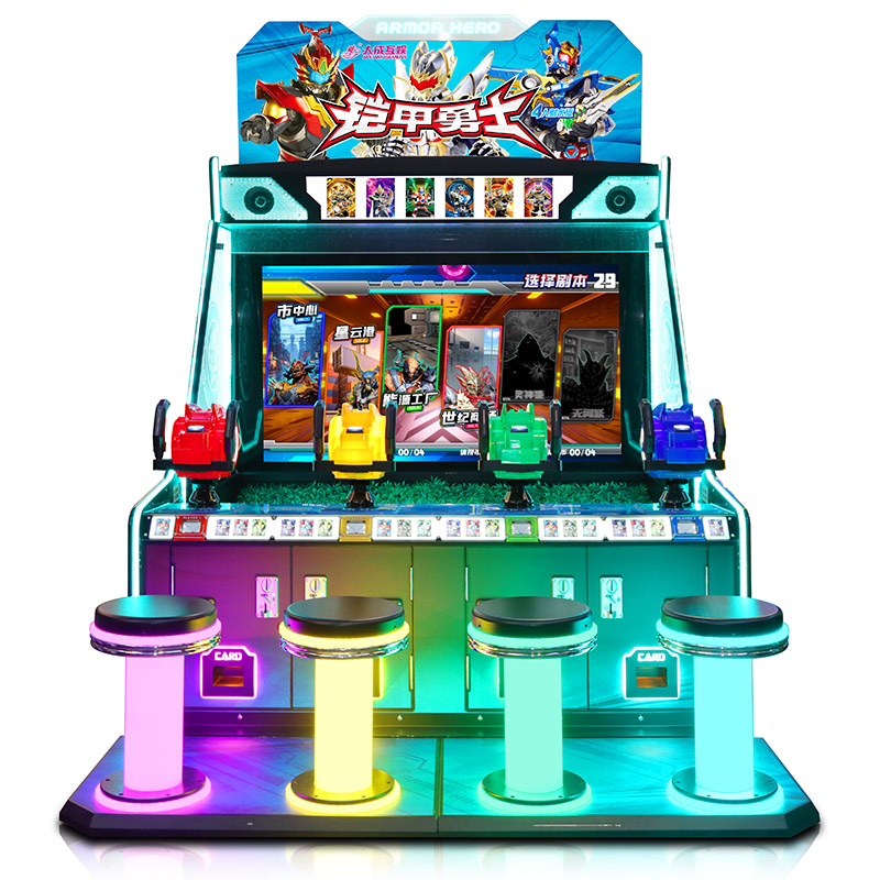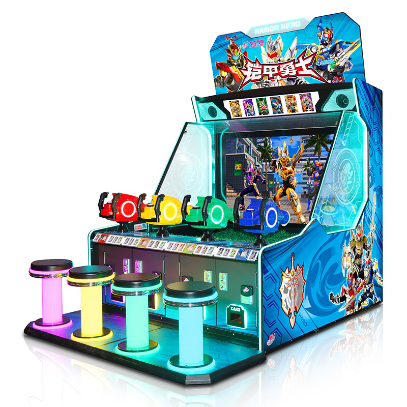 新开发的一款室内中高端射水模拟游艺机,铠甲勇士官方IP授权,经典射水与技能卡片玩法结合,玩家可以使用技能卡释放超强技能,也可以直接收藏铠甲勇士卡片。带给玩家更新颖,有趣的游玩体验。经典四卡位也更适合亲子,游客一起游戏和互动。